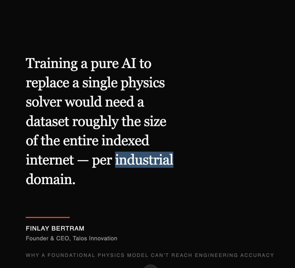 If an AI language model hallucinates a slightly wrong word, the sentence usually still makes sense. But if an engineering simulation is off by a fraction of a percent, a bridge collapses, a jet engine fails, or a pressurised well blows out.